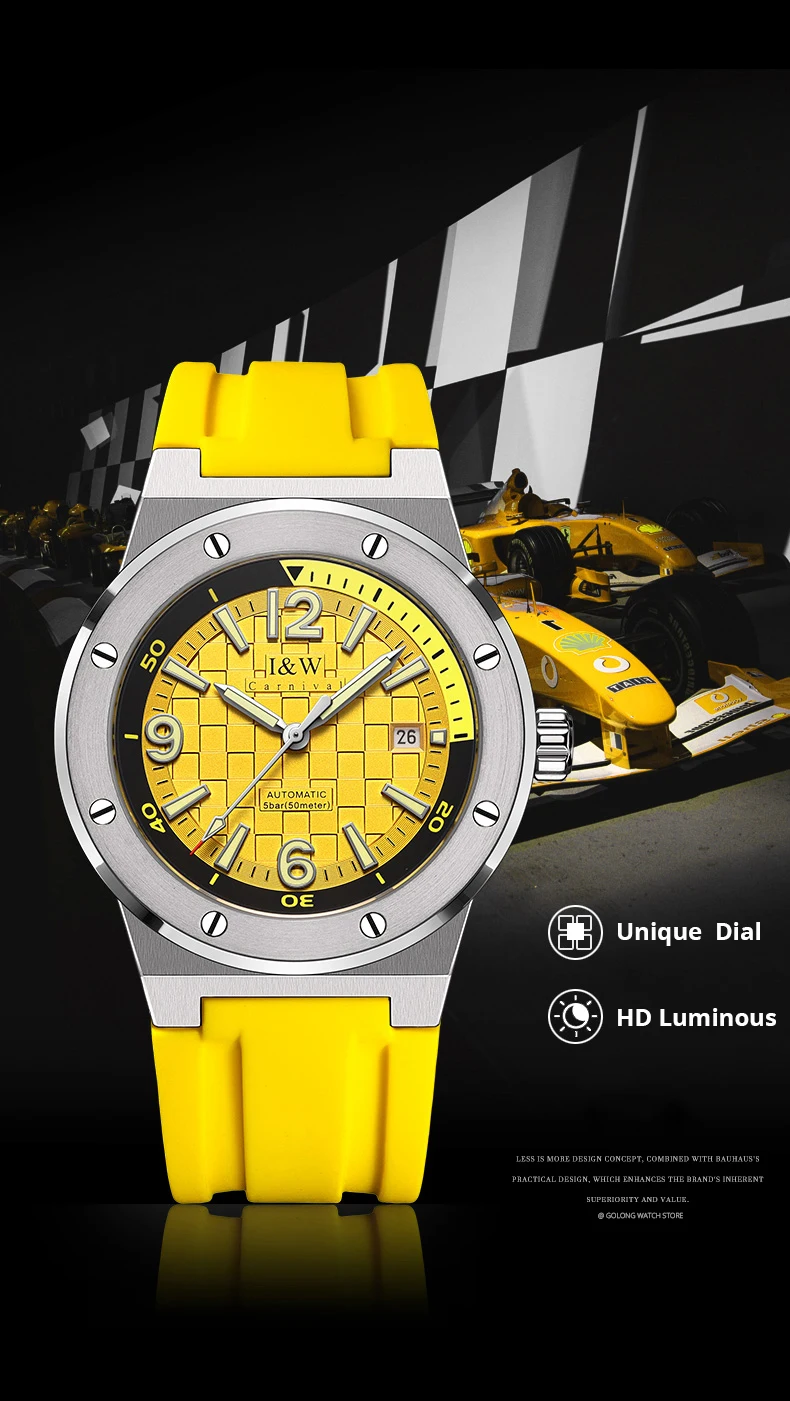Para o homem que não aceita o comum, o Relógio I&W Automático é mais do que um acessório; é uma declaração de estilo e poder. Com um mostrador amarelo vibrante em padrão 3D e uma estrutura em aço inoxidável, este modelo foi desenhado para quem vive em alta velocidade, mas não abre mão da elegância clássica de um movimento mecânico.
